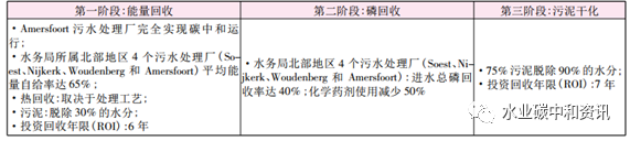 NEWs發(fā)展的終極目標是在同一污水處理廠內(nèi)實現(xiàn)營養(yǎng)物、能源和水三位一體生產(chǎn)。Vallei & Eem 水務局計劃以Amersfoort污水處理廠為案例,探求新技術與新工藝,以使污水廠至少能達到能量自給自足的水平。具體目標是2014年Amersfoort污水廠將以能量工廠方式運行,除能量回收外,營養(yǎng)物(N、P)也予以回收利用。同時Vallei&Eem水務局與荷蘭應用水研究基金會(STOWA)已開始執(zhí)行Omzet-Amersfoort合作計劃(2011——2016),這一計劃主要在Amersfoort污水廠中實施,將其轉化為能源與資源回收工廠。其預期結果見下表。
