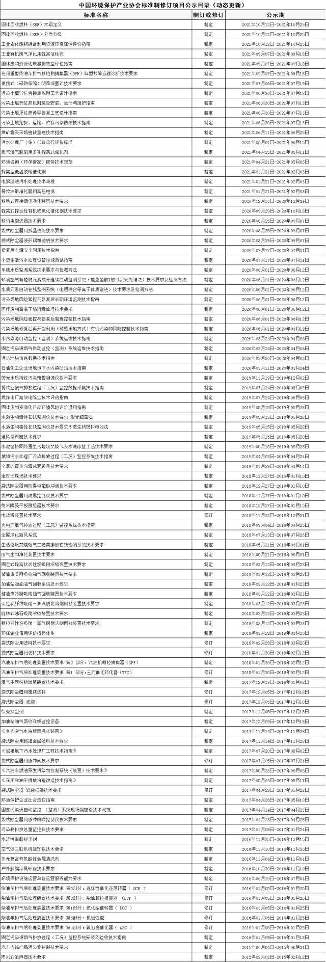 中國(guó)環(huán)境保護(hù)產(chǎn)業(yè)協(xié)會(huì)標(biāo)準(zhǔn)制修訂項(xiàng)目的公示