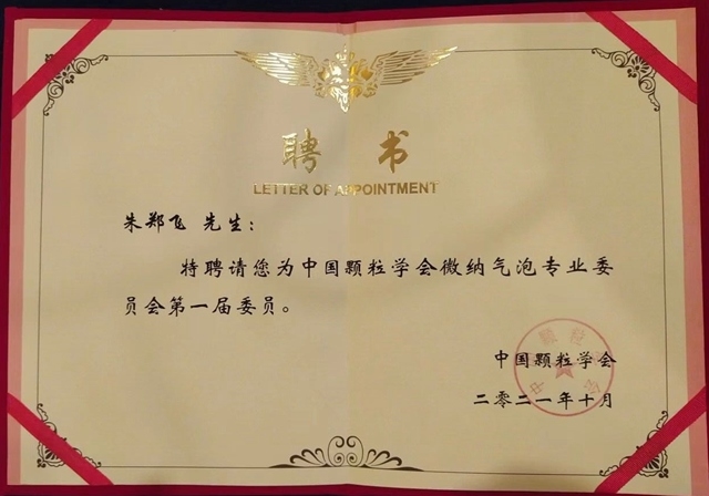 2021年10月22日-25日,微納氣泡委員會年會在中國常州召開。本次年會由中國顆粒學(xué)會主辦,江蘇如克環(huán)保設(shè)備有限公司(以下簡稱“如克環(huán)保”)應(yīng)邀參加,并提供年會贊助。會上,如克環(huán)??偟闹爨嶏w總經(jīng)理被聘任為微納氣泡委員會第一屆委員。