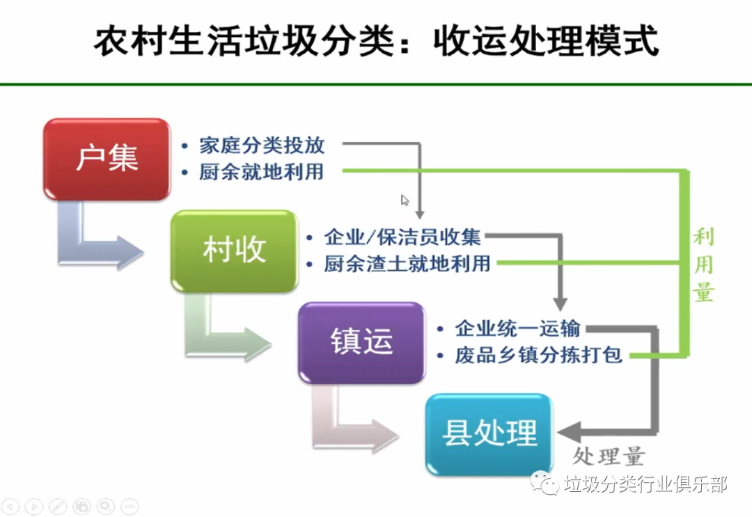 農(nóng)村生活垃圾收運(yùn)處理模式整體來說是戶籍-村收-鎮(zhèn)運(yùn)-縣處理。在這種情況下,一部分垃圾比如廚余垃圾,家庭、村、鄉(xiāng)鎮(zhèn)都可以去就地利用。廢舊物品等有一定價值的,這些我們建立一個回收體系。而有害垃圾和其它垃圾是需要外運(yùn)去處理的??偟膩碚f,垃圾量已經(jīng)不大了,所以收運(yùn)處理模式還是比較容易去做的。