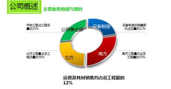 如上圖可見(jiàn),紫科的主要業(yè)務(wù)細(xì)分為四大板塊,第一是設(shè)備制造,設(shè)備制造總銷售額約占總量的11%;第二是公用事業(yè)板塊,市政工程占工程總量的15%,在全國(guó)主要有兩個(gè)點(diǎn)。第一點(diǎn)在廣州總部,第二點(diǎn)在北京,這兩點(diǎn)一線負(fù)責(zé)全國(guó)市政的推廣;第三是北方板塊主要是工業(yè)板塊,總部在山東濰坊,是我們的全資子公司,北方工程量占總工程總量的39%;第四是南方板塊,總部在南京,南方工程量約占總工程量的35%。在運(yùn)營(yíng)和耗材的銷售,從2015年開(kāi)始已經(jīng)占到總銷售額的12%。