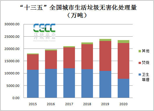 2.“十三五”全國城市生活垃圾無害化設施建設情況