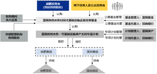 其次,由富國資產(chǎn)作為專項計劃管理人設(shè)立首創(chuàng)水務(wù)基礎(chǔ)設(shè)施資產(chǎn)支持專項計劃,首創(chuàng)水務(wù)基礎(chǔ)設(shè)施證券投資基金設(shè)立后以募集資金認(rèn)購資產(chǎn)支持專項計劃全部份額,專項計劃完成設(shè)立。