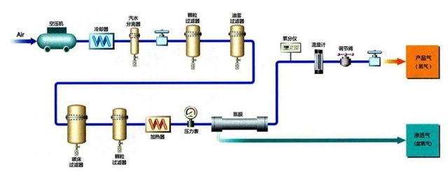 中科院大連化學(xué)物理研究所擁有膜分離器生產(chǎn)基地,在膜技術(shù)大型化方面多年積累的經(jīng)驗(yàn)。“七五”期間作了探索性研究,為“八五”期間完成富氮產(chǎn)量500NN3/hr,富氮濃度≥95%工業(yè)裝置的建立奠定了基礎(chǔ)。