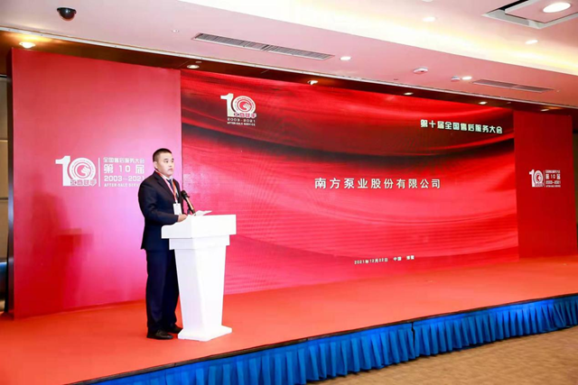 南方泵業(yè)銷售區(qū)總易愛陽先生應(yīng)邀參會(huì)并發(fā)表演講,與會(huì)場(chǎng)領(lǐng)導(dǎo)嘉賓匯報(bào)交流南方泵業(yè)的服務(wù)理念和30年匠心發(fā)展過程中取得的成果。