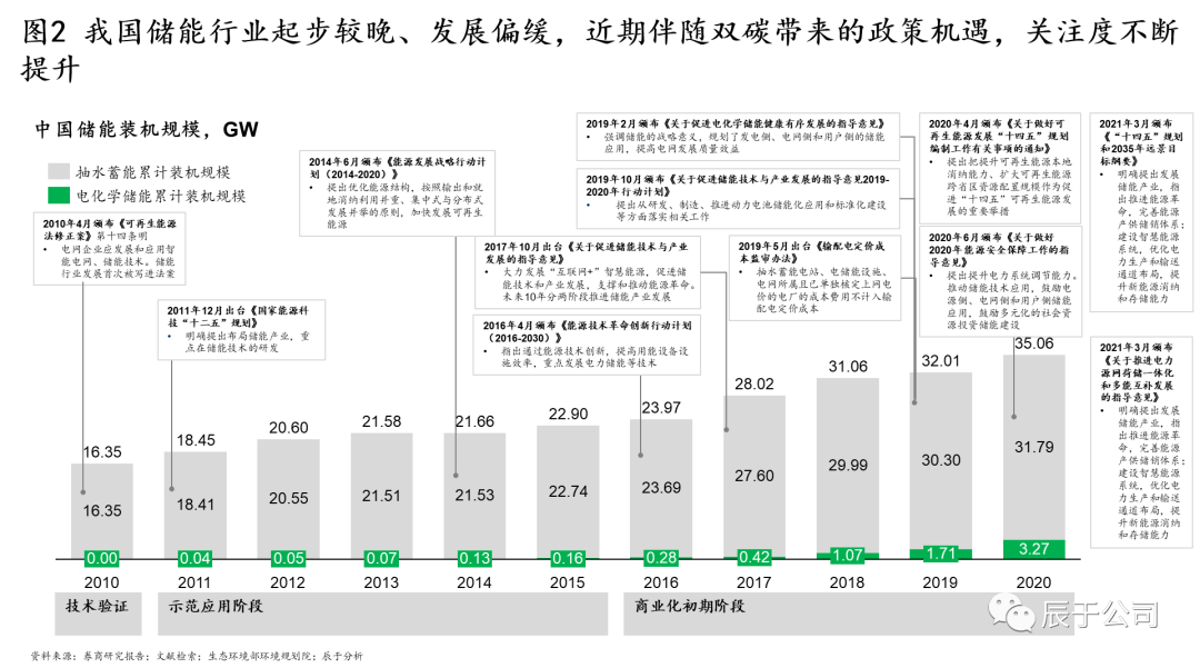 我國在儲能產(chǎn)業(yè)的戰(zhàn)略布局開始于2005年出臺的《可再生能源發(fā)展指導目錄》。經(jīng)過十多年的發(fā)展,目前儲能方面的政策已日趨完善,儲能發(fā)展已從研發(fā)示范向規(guī)?;?、市場化應用轉(zhuǎn)變。