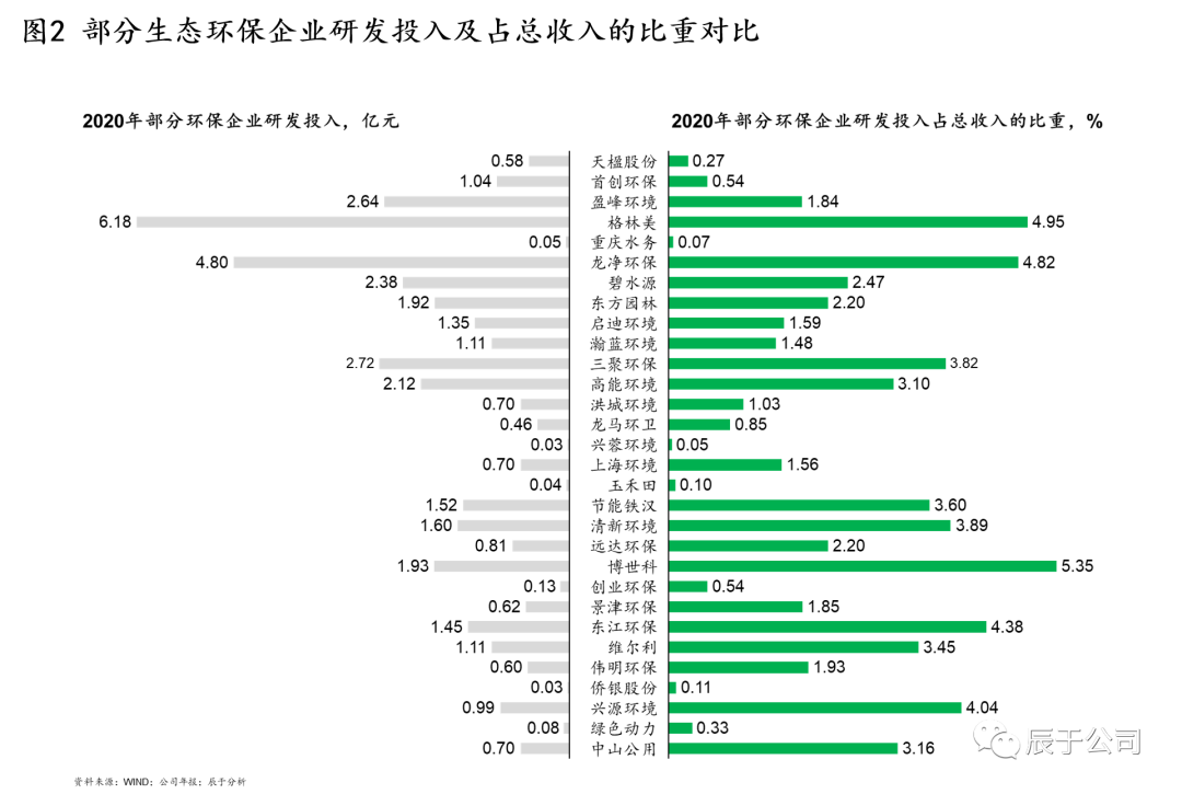 造成以上問題的原因很多,主要有兩個(gè):一是國內(nèi)生態(tài)環(huán)保行業(yè)之前一直處于簡單、粗暴的“跑馬圈地”時(shí)代,強(qiáng)政府關(guān)系和低成本融資成為這一階段企業(yè)制勝的“不二法寶”,這種“浮躁”的大環(huán)境導(dǎo)致很多企業(yè)“重投建、輕技運(yùn)”;二是創(chuàng)新型和革新型技術(shù)投入周期長,回報(bào)不明顯,很多企業(yè)尤其是三年任期制下的國企高層們?nèi)狈ψ銐蚰托模蒎e(cuò)機(jī)制缺失也讓他們對高風(fēng)險(xiǎn)的研發(fā)投入持謹(jǐn)慎態(tài)度,這從生態(tài)環(huán)保領(lǐng)域的上市企業(yè)的研發(fā)投入占收入的比重可見一斑(見圖2)。