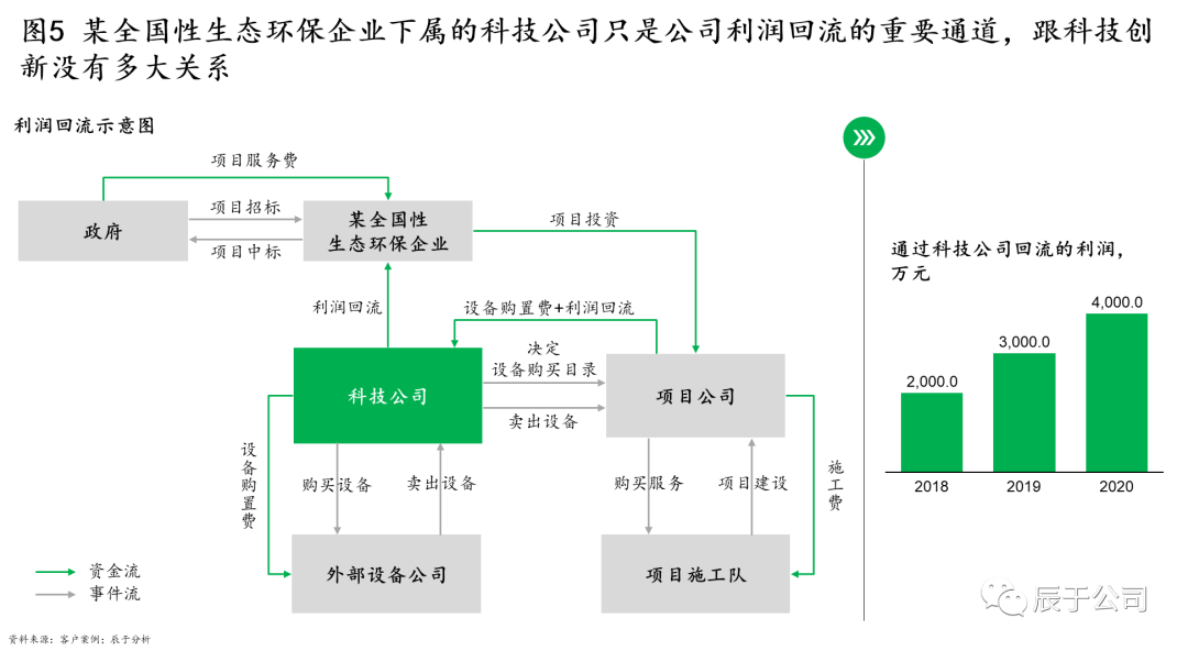 另外我們也注意到,有些生態(tài)環(huán)保企業(yè)通過新設(shè)或并購擁有了自己獨(dú)立的技術(shù)公司,其初心是:一方面服務(wù)內(nèi)部,為各業(yè)務(wù)條線的項(xiàng)目提供技術(shù)支持,提升研發(fā)創(chuàng)新、技術(shù)支持、設(shè)備集成等方面能力;另一方面服務(wù)外部,通過內(nèi)部項(xiàng)目總結(jié)經(jīng)驗(yàn),形成有自身特色的技術(shù)/產(chǎn)品方案/體系,拓展外部市場,成為公司輕資產(chǎn)戰(zhàn)略的踐行者與引領(lǐng)者,帶來新的收入與利潤增長點(diǎn)。