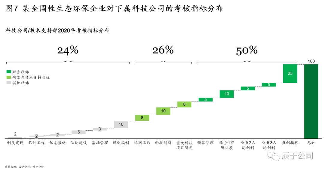 然而實(shí)際情況是:這些技術(shù)公司要么是“扶不起的阿斗”,經(jīng)營多年,干的仍然主要是公司內(nèi)部的那些業(yè)務(wù),有些甚至“只外包不實(shí)干”,成為名副其實(shí)的“二道販子”,徒增成本之外,對企業(yè)沒有太多增值(見圖5);要么是“眼睛全往外看”,一心想的是如何開拓外部市場,對公司內(nèi)部的業(yè)務(wù)“不聞不問不參與”,例如針對一家全國性生態(tài)環(huán)保企業(yè)的調(diào)研發(fā)現(xiàn),下屬技術(shù)公司超過80%的技術(shù)人員都在做外部市場,只有不足20%的人偶爾會參與內(nèi)部項(xiàng)目,8條業(yè)務(wù)線只有1條業(yè)務(wù)線形成了標(biāo)準(zhǔn)化的技術(shù)方案。