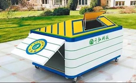 只有一個很小的垃圾收納口露出地面,卻有一個容量約3立方米的“大肚子”藏身地下。這種垃圾箱不怕風(fēng)吹雨打、防止蚊蠅滋生、避免臭氣外露,是市容環(huán)保、安全衛(wèi)生的創(chuàng)意發(fā)明。垃圾箱的設(shè)計既安全又實用,由于垃圾箱地下部分比較深,為防止孩子或?qū)櫸锱肋M去,垃圾箱內(nèi)部還設(shè)置了一層安全隔板,人們倒入的生活垃圾會先落到內(nèi)部的隔板中。