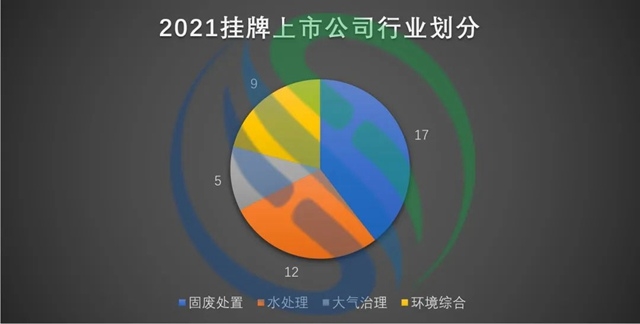 根據(jù)中國水網(wǎng)統(tǒng)計(jì)數(shù)據(jù)來看,2021年新增涉環(huán)保業(yè)務(wù)上市公司中,有17家從事固廢處置行業(yè),有12家從事水處理行業(yè),有9家從事環(huán)境綜合領(lǐng)域,有5家從事大氣治理行業(yè)。