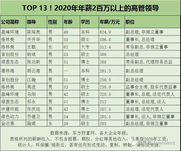 3、環(huán)保行業(yè)高管薪酬大揭秘!哪家公司待遇最好?“最強打工人”是誰?環(huán)保圈,2021-06-11