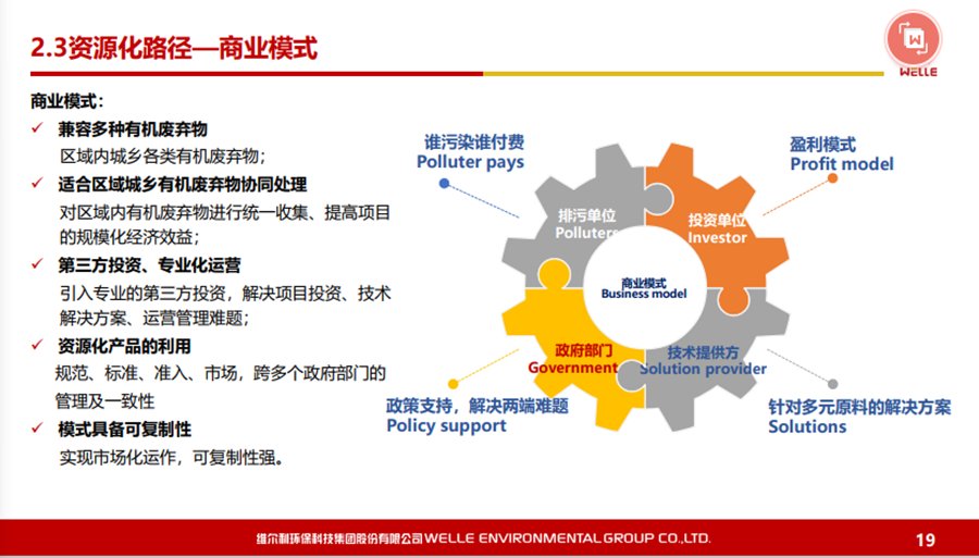 當前,有些城市對餐廚垃圾并不是分得特別清楚。如在紹興和上海,主要是餐廚協(xié)同處理。而在有些地方,比如荊門,餐廚垃圾和污泥協(xié)同處理,這樣使得厭氧反應和有機物都會大大加強,這也是我們這幾年積累的一些經驗。在農業(yè)農村有機廢棄物處理方面,特別要講的是和杭能的合作。創(chuàng)始人蔡昌達先生是農業(yè)沼氣領域的老人,深耕行業(yè)四十多年。維爾利與杭能深度合作后,幫助我們在這個行業(yè)里建立起了行業(yè)地位。總結起來,無論是在預處理技術還是厭氧處理,沼氣儲存和利用,以及深度延伸的產品開發(fā),都有新的技術或者產品。尤其是這幾年,我們通過數(shù)字化提升了整個設計、裝備制造、運維的管理能力,有機會也可以和大家做深度交流。僅僅看沼氣,大家還是覺得收益不能保證,尤其算賬不一定能算得過來。即使現(xiàn)在有碳減排的收益,但是要真正形成交易,變成真金白銀也不是那么容易的事。對此我們也做了新的探索,比如對于有機固渣、食用蛋白,或者是做一些食用蛋白的研究,這塊是值得探討的。中國在飼料蛋白這塊缺少量是非常大的,所以有一些機會。但是真的規(guī)?;\行以后,食用蛋白的標準是不是能夠作為大規(guī)模飼料的原料,還需要做一些探討。目前,我們和國外一些有規(guī)模的機構也在進行一些合作,在國內做現(xiàn)代化大規(guī)模養(yǎng)殖的示范項目。其他的一些應用,如肥料化的應用也在做探討,甚至我們在做農業(yè)示范園區(qū)的實驗,更多是希望在最終產品的出路上做一些嘗試。在商業(yè)模式上,我們企業(yè)也需要做一些思考。無論是和投資機構、投資人,或者是排污企業(yè)、政府、技術設備供應商等,我們怎么通過共贏的模式創(chuàng)新,能夠形成一些深度的商業(yè)合作?這塊我們也在做不同的思考。環(huán)境保護涉及到一些新的能源,結合鄉(xiāng)村振興,一、二、三生態(tài)聯(lián)動,也給我們這個行業(yè)帶來非常多的機會,需要企業(yè)或者在座的專家同仁一起探討,共同發(fā)聲,才能夠把行業(yè)做得更好。在上海的松江、老港、金山、嘉定等濕垃圾處理項目,我們都作為技術設備供應商EPC深度參與。另外,像維爾利紹興市循環(huán)生態(tài)產業(yè)園(一期)PPP項目,最近可能廚余還要擴大四倍。這塊的產品是以沼氣為主,已經做了生產線,但是還沒有進入商業(yè)運行。這些項目相對來說還沒有真正帶有垃圾分類的本質。對于大城市現(xiàn)在還是以無害化為主,如果未來要到更好的資源化,跟農業(yè)結合的可能更有前景。整個產業(yè)園餐廚廚余垃圾有天然氣的回收,整個項目協(xié)同了以后效益還是比較好的。在農業(yè)項目方面,我們在梁家河農業(yè)部推了“果沼畜”,對促進高品質農業(yè)發(fā)展有非常好的作用。另外,我們在“黑龍江德潤項目”做了以秸稈為原料的大型沼氣項目,山東民和牧業(yè)(二期)4.2萬方生物天然氣項目,包括雞糞、秸稈等等項目,這些項目在國內都有比較好的示范作用。典型案例—城鄉(xiāng)混合原料有機廢棄物資源化我們在徐州國新做了生物天然氣項目,原料有秸稈、餐廚垃圾、糞便等等,這種項目要協(xié)同處理,未來競爭力相對比較強,包括原料的成本、出資費用等都是有保障的,能夠把環(huán)保和能源化利用進行深度結合。中廣核衡水混合原料10萬方生物天然氣項目等,都在國內有比較好的示范作用。王凱軍老師講到,國家發(fā)改委支持了64個大型規(guī)?;锶細庠圏c項目,我們總共做了22個。這些項目的建設問題不是很大,但是在運行方面,尤其是如何能夠盈利地運行,確實是有些問題的。我們后來做 的“廣西武鳴”項目,工業(yè)原料原來做的是木薯花,后期原料供應不足,只好通過買其他原料來解決。從運營上來說,需要非常多的資源調配,最終有可能給一些政策,能夠把餐廚、廚余垃圾建設起來,項目才能盤活。類似這樣的項目,我們希望能夠在各位的支持下能夠運行起來。起碼自己建設的一些項目能夠運行起來,真正地做成示范標桿。實際上,項目原料是多元的。但是從投資以及收益來說,復盤以后算下來,如果后面增加碳減排的設計,這種項目收益就非常好?,F(xiàn)在還不能直接作為經濟補償,但是起碼現(xiàn)在收益可以達到6%,也可以到8%或者10%。這種項目未來是有預期的,各地環(huán)境集團會大面積地來推廣。我們認為在央企、國企的帶領下,這樣的項目既能夠承擔國家責任,又能夠把產業(yè)帶動起來,具有很好的示范作用。下面再分享一個案例,我們和優(yōu)然做了幾個項目,現(xiàn)在奶牛行業(yè)的牛糞、沼渣,原來大部分都是用耗氧堆肥做處理,現(xiàn)在通過厭氧以后,沼渣進一步做回收,收益也還可以,現(xiàn)在也有深度的合作,項目生產包做起來以后,能夠做一個3A的平臺。總的來說,這些項目要實現(xiàn)盈利,確實相對比較艱苦。但是我們相信,隨著國家推綠色、綠電、綠氣,或者碳減排政策逐步出臺,這個行業(yè)會越來越好。