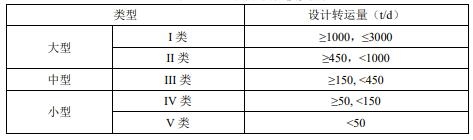 2.0.4 中轉(zhuǎn)站規(guī)模分為大、中、小型三大類(lèi)和 I、II、III、IV、V 類(lèi)五小類(lèi)(表 2.0.1)。
