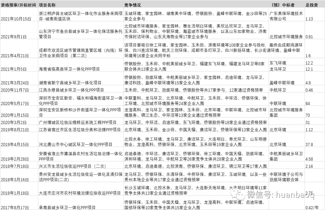 ▼表2 2017年至今部分競爭激烈的環(huán)衛(wèi)項(xiàng)目列表