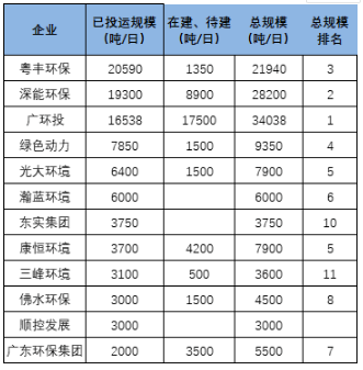 49350噸/日項目在建、待建,廣環(huán)投、深能環(huán)保領(lǐng)跑