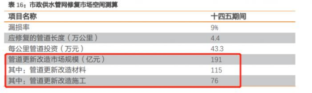 在地方層面,廣東、浙江、江蘇、福建、河南、山西等省份陸續(xù)在今年政府工作報(bào)告、擴(kuò)大有效投資的重大項(xiàng)目清單、部門專項(xiàng)文件中明確了城市管網(wǎng)建設(shè)和改造的規(guī)劃路線。比如,在去年遭遇洪澇災(zāi)害的河南,今年其政府工作報(bào)告提出,補(bǔ)齊城市防洪排澇短板。注重城市“里子工程”“避險(xiǎn)工程”建設(shè),構(gòu)建源頭減排、管網(wǎng)排放、蓄排并舉、超標(biāo)應(yīng)急的防澇工程體系。另一去年遭遇強(qiáng)降雨的省份山西,近日發(fā)布了《山西省城市地下管線管理辦法》。其中明確,新建、改建、擴(kuò)建的城市道路交付使用后未滿5年的,地下管線建設(shè)單位不得挖掘道路敷設(shè)地下管線。廣東在政府工作報(bào)告中提出,除了在老舊管道改造上發(fā)力,廣東還將加大管道的新建工程?!笆奈濉逼陂g,全省將新建互聯(lián)互通管道299.3公里。浙江在今年政府工作報(bào)告中也明確,實(shí)施一批重大城市建設(shè)改造項(xiàng)目,積極推進(jìn)燃?xì)夤艿栏?、城市?nèi)澇治理等,提升城市功能。浙江省發(fā)改委表示,要加強(qiáng)防洪排澇工程等專項(xiàng)項(xiàng)目儲備和前期工作,積極爭取中央預(yù)算內(nèi)投資,支持重大項(xiàng)目建設(shè)。目前,該省“擬申請排水設(shè)施建設(shè)2022年中央預(yù)算內(nèi)投資項(xiàng)目”已公示。在給排水管網(wǎng)加速啟動建設(shè)、更新的情況下,帶動了相關(guān)管道行業(yè)的景氣度也大幅提升。以城市給排水系統(tǒng)為例,城市給排水系統(tǒng)主要用的是鋼鐵管(以球墨鑄管為主,常用于全口徑的供水管道建設(shè))和塑料管(塑料管常用于建筑內(nèi)的給排水)。其中,球墨鑄管的占比大約在50%以上。截至2022年1月14日,離心球磨鑄管與離心球磨鑄鐵價格之差接近2800元/噸,創(chuàng)下2011年以來的最高水平。這一價差表明離心球磨鑄管的需求較為旺盛。管道制造知名企業(yè),包括中國聯(lián)塑、新興鑄管、凱鑫管道、華生管道、亞大集團(tuán)等,都早早布局相關(guān)環(huán)保業(yè)務(wù)。以中國聯(lián)塑為例,從2015年開始便積極布局環(huán)保領(lǐng)域,目前已經(jīng)完成能夠開發(fā)和提供綜合管廊、海綿城市、智能管網(wǎng)等所需的全系列產(chǎn)品和相應(yīng)的一體化解決方案及服務(wù)。新興鑄管:除了傳統(tǒng)鑄造,新興鑄管在21年聯(lián)合華為公司、鯤鵬聯(lián)合創(chuàng)新中心簽署三方協(xié)議,共同開發(fā)智慧水務(wù)管網(wǎng)系統(tǒng),推進(jìn)國家級智慧水務(wù)管道團(tuán)體標(biāo)準(zhǔn)體系、國家級水務(wù)工業(yè)聯(lián)網(wǎng)平臺和水?dāng)?shù)據(jù)云平臺建設(shè)。凱鑫管道:在企業(yè)外貿(mào)發(fā)展戰(zhàn)略的指導(dǎo)下,凱鑫緊隨市場潮流,借助“互聯(lián)網(wǎng)+”,全面提升生態(tài)環(huán)境治理能力和治理體系現(xiàn)代化。加強(qiáng)智慧環(huán)境建設(shè),加強(qiáng)前沿技術(shù)在環(huán)境領(lǐng)域的應(yīng)用。 細(xì)分領(lǐng)域催生新機(jī)遇,探測與修復(fù)成為補(bǔ)齊管網(wǎng)短板關(guān)鍵