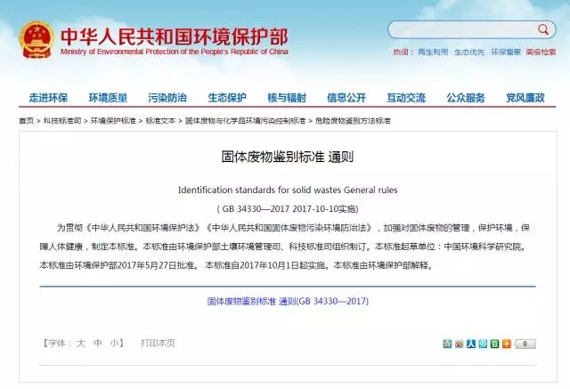 因此,為了統(tǒng)一各個檢驗機構或鑒別機構鑒別固體廢物的尺度,保證鑒別質量和鑒別結果的公正和可靠,環(huán)境保護部與國家質量監(jiān)督檢驗總局聯(lián)合發(fā)布《固體廢物鑒別標準 通則》(GB 34330-2017)。該標準是我國首次制定的關于固體廢物的鑒別標準,具有強制執(zhí)行的效力。