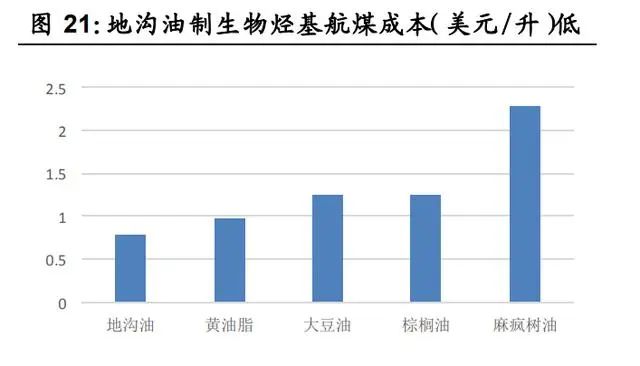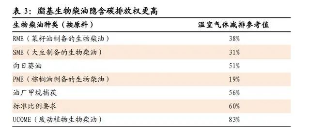 格拉斯哥峰會突破行業(yè)發(fā)展天花板,預計新增15-30萬噸/日新需求。根據(jù)“十四五”規(guī)劃,垃圾焚燒行業(yè)在“十四五”期間仍將保持約10%的行業(yè)增速,穩(wěn)健增長。2021 年11月10 日,中美《強化氣候行動的格拉斯哥聯(lián)合宣言》發(fā)布,聚焦強化甲烷測量和減排。垃圾填埋為甲烷主要的人為排放源之一,管控垃圾填埋產(chǎn)生的甲烷排放量減排潛力較大。我們測算我國每噸生活垃圾衛(wèi)生填埋排放甲烷 58千克,按照UNEP關于垃圾 填埋甲烷減排的規(guī)劃目標,如果減排量全由焚燒替代填埋來實現(xiàn), 則將新增15萬噸/日的垃圾焚燒發(fā)電產(chǎn)能需求。極限狀態(tài)下,如果 效仿日本、德國把填埋僅作為焚燒尾渣的處理手段,對應將增加30萬噸/日垃圾焚燒產(chǎn)能。焚燒替代填埋為大勢所趨,垃圾焚燒行業(yè)天花板在甲烷減排的約束下將提升至更高水平。CCER 交易將提升垃圾焚燒公司的盈利能力和現(xiàn)金流水平CCER交易將提升垃圾焚燒公司盈利能力及現(xiàn)金流水平。CCER交易將顯著增厚垃圾焚燒公司利潤,若按照噸垃圾二氧化碳減排量行業(yè)均值0.3噸、假設CCER 交易價格40元/噸 CO2測算,CCER 交易預計帶來噸焚燒處置垃圾12元的增量收入,將增厚目前行業(yè)上市公司平均水平營收 的5%及凈利潤的17%左右。伴隨碳中和配套政策逐步落實,CCER交易將使得垃圾焚燒公司的盈利能力及現(xiàn)金流水平獲得明顯提升。如前文所述,固廢等運營類公司具備天然的現(xiàn)金流優(yōu)勢,存在向新能源等具備更廣闊市場轉向的先決條件。同時固廢行業(yè)面臨市場分化的競爭格局,所以大多數(shù)固廢龍頭企業(yè)均有轉型預期。結合固廢公司的經(jīng)營特點,主要是圍繞新能源綠電運營商、新能源材料生產(chǎn)商等領域開展轉型業(yè)務。我們認為伴隨轉型公司的邏輯逐漸落地,一方面可以獲得新的增長動力,凈利潤增速預期進一步提升,另一方面轉換賽道也有助于公司 的估值中樞提升。再生油:碳約束推動需求高增,再生地溝油產(chǎn)業(yè)升級將至碳約束推動需求高增,再生地溝油產(chǎn)業(yè)升級將至。1)碳約束刺激再生油需求,歐洲生物柴油量價將長期處于高位。2)國際政策推動國內(nèi)地溝油利用“高端化”:車用油方面,“烴基化”趨勢明顯;航油方面,國際航協(xié)2050碳中和目標推動生物質烴基航煤需求釋放。地溝油制烴基柴油附加值將較UCOME顯著提升,再生地溝油向著高端產(chǎn)品升級的產(chǎn)業(yè)趨勢明顯。1. 碳約束刺激需求,歐洲生物柴油量價將長期處于高位歐洲生物柴油需求旺盛,量價將長期處于高位。1)歐盟是全球生物柴油最大的消費市場,目前歐盟生物柴油消費量占全球總消費量的 40%。2)發(fā)達國家強制按比例添加:伴隨《歐盟可再生能源指令》于2021年開始實施,歐洲公路運輸行業(yè)的生物柴油摻混比例將從 10%提升至25%,需 求將在未來10年保持增長態(tài)勢。按照目前全球生物柴油產(chǎn)能計算,到2030年歐洲地區(qū)將至少出現(xiàn)1000萬噸/年的供給缺口;如果考慮美國拜登政府改變碳減排政策帶來的需求增加以及歐洲地區(qū)淘汰ILUC高風險燃料的影響,總體供給缺口將達1500萬噸/年。3)廢油脂基生物柴油(UCOME)隱含碳排放權更高,節(jié)碳效果最為突出,競爭優(yōu)勢明顯,長期處于供不應求狀態(tài)。2. 國際政策推動國內(nèi)地溝油利用“高端化”,產(chǎn)業(yè)升級將至目前我國地溝油資源化終端產(chǎn)物主要以脂肪酸甲酯為主,隨著國際政策驅動以及地溝油脫氧加氫制先進燃料生物烴基柴油/航煤技術進入成熟階段,我國地溝油資源化終端產(chǎn)品將由脂肪酸甲酯產(chǎn)品向生物質烴基柴 油/航煤升級,產(chǎn)品附加值將逐步提升,產(chǎn)業(yè)升級良機將至。地溝油經(jīng)加工再利用而制備的生物質燃料,包括生物柴油、可再生柴油以及生物質航煤:1)生物柴油是廢油脂或動植物油脂經(jīng)酯交換或酯化制成的脂肪酸甲酯(FAME),需要與常規(guī)化石柴油摻混使用, 目前我國地溝油資源化終端產(chǎn)物主要以脂肪酸甲酯為主(UCOME);2)可再生柴油是廢油脂或動植物油脂通過加氫和異構化得到的烴基柴油(HVO/HEFA),為國際認可的先進生物燃料,可完全替代化 石柴油或與化石柴油制成調和燃料;3)生物質航煤是由廢油脂經(jīng)加氫處理得到 HEFA 后,經(jīng)異構化生成。國際政策推動國內(nèi)地溝油利用“高端化”:1)車用油“烴基化”趨勢明顯。未來伴隨歐洲對于添加比例、排放標準等約束趨嚴,車用油面臨“烴基化”趨勢,生物柴油將向著可再生柴油方向升級。2) 國際航協(xié) 2050碳中和目標推動生物質烴基航煤需求釋放。國際航協(xié)設立2050年實現(xiàn)碳中和的強制性目標,生物質航煤作為主要減 排手段需求量將攀升。①作為高排放行業(yè)之一,2019年航空業(yè)占全 球碳排放量的 2%。②國際航協(xié)(IATA)于 2021 年 10 月通過決議, 290 個成員航司在 2050 年實現(xiàn)碳中和,助力實現(xiàn)巴黎協(xié)定控制溫升 的目標。計劃減排量相當于 2050 年前累計減排 212 億噸二氧化碳 當量。③現(xiàn)有技術中,生物質航煤為主的環(huán)保航空燃料將為主要的 減排手段,環(huán)保燃料預計貢獻 65%碳減排量。IATA 初步目標為, 2025 年環(huán)保航空燃料產(chǎn)量由 2019 年的 1.4 億升提升至 79 億升, IEA 
