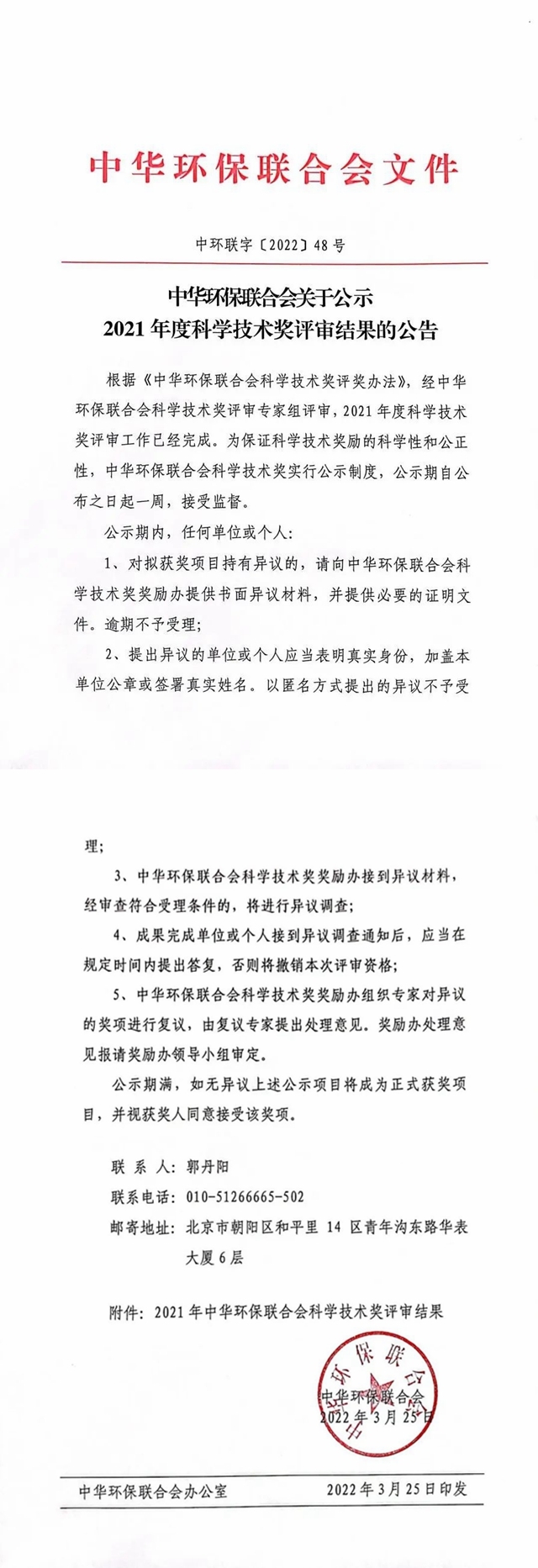 據悉,本項目已發(fā)表高水平論文40余篇,項目成果經濟、社會和環(huán)境效益顯著,由劉文清院士、任洪強院士等專家組成的委員會一致認為該項目在膜材料制備技術方面處于國際領先水平。最終,經過層層選拔、評審、公示,本項目獲得中華環(huán)保聯合會“2021年度科學技術獎”科技進步獎一等獎榮譽!