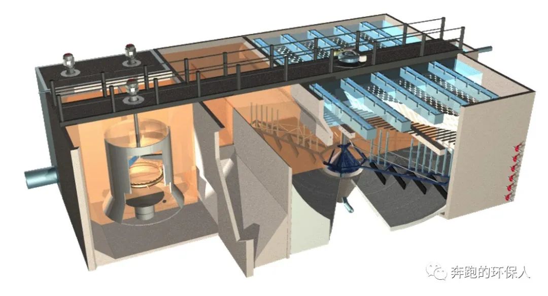 寫到這里,出于小編的敬(BU)業(yè)(YAO)度(LIAN),這里必須插播一個(gè)廣告了??瓷蠄D的這個(gè)沉淀池造型,結(jié)合其“快-慢混合+斜管沉淀、刮泥機(jī)、污泥內(nèi)循環(huán)”的描述,只能說,這個(gè)沉淀池和蘇伊士的高密度沉淀池非常相似。