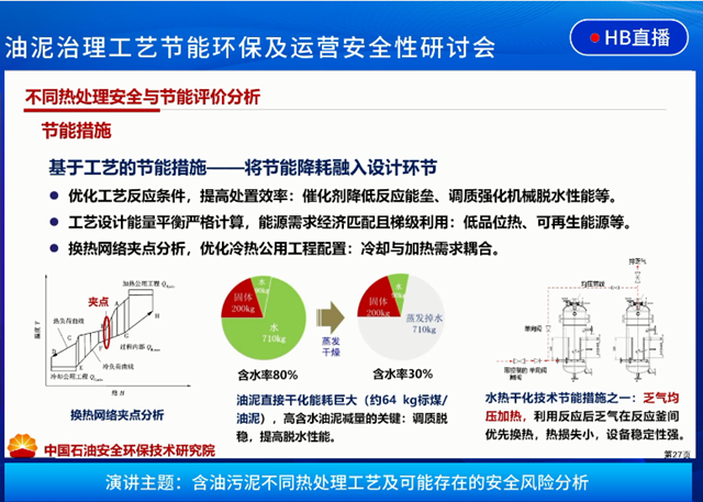 在《含油污泥不同熱處理工藝及可能存在的安全風(fēng)險(xiǎn)分析》的主題演講中,劉光全詳細(xì)介紹了中國(guó)石油集團(tuán)安全環(huán)保技術(shù)研究院開發(fā)的熱處理工藝,包括含油固廢化學(xué)熱洗、超熱蒸汽噴射干化、熱脫附、水熱干化等,并對(duì)幾種技術(shù)的特點(diǎn)及安全性進(jìn)行了闡述與分析。