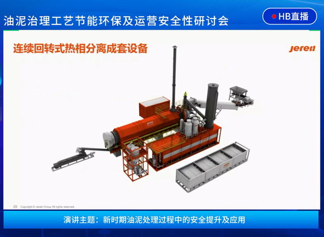 本次研討會(huì)杰瑞環(huán)保工藝工程師張巖也帶來了《新時(shí)期油泥處理過程中的安全提升及應(yīng)用》的主題分享:杰瑞環(huán)保擁有連續(xù)回轉(zhuǎn)式熱相分離、連續(xù)螺旋式分析分離、調(diào)制分離、油罐機(jī)械清洗、廢棄物回注等多種核心技術(shù),以及物料預(yù)處理及均質(zhì)化等配套技術(shù),針對(duì)不同客戶需求、不同領(lǐng)域的含油廢棄物,以最合適的分類分質(zhì)方式,提供高標(biāo)準(zhǔn)低成本、高效率的一體化的含油廢棄物及工業(yè)廢泥治理方案。