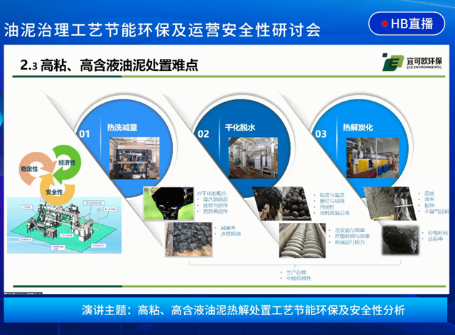 宜可歐環(huán)保于立松帶來的《高粘、高含液油泥熱解處置工藝節(jié)能環(huán)保及安全性分析》的演講則更進(jìn)一步,朝著油泥治理中更細(xì)分難度更高的領(lǐng)域深挖,聚焦高粘、高含液特性污泥這一痛點(diǎn),著重分析了處理過程中會(huì)遇到的問題及宜可歐對(duì)此提供的高效解決方案。