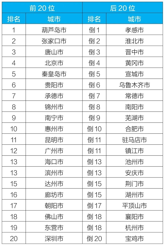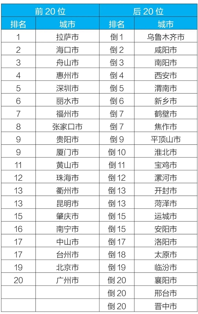 3月,168個(gè)重點(diǎn)城市中,???、拉薩和舟山市等城市空氣質(zhì)量相對(duì)較好(從第1名至第20名);咸陽(yáng)、太原和陽(yáng)泉市等城市空氣質(zhì)量相對(duì)較差(從倒數(shù)第1名至倒數(shù)第20名),見(jiàn)附表1。