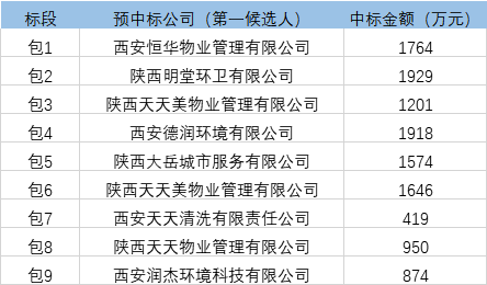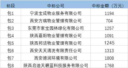 近日,西安市碑林區(qū)、未央區(qū)兩大億級環(huán)衛(wèi)項目先后開標。兩項目共17個標包,最大包金額1929萬元,最小標金額為704萬元。除了東莞家寶園林和寧波寶成物業(yè)各中一標外,另15個標包分別被15家陜西省企業(yè)獲得。具體如下表: