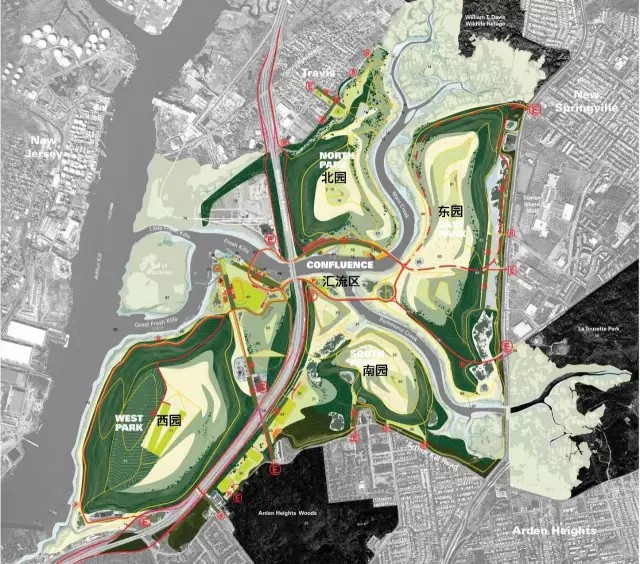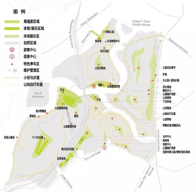公園的建設(shè)項(xiàng)目以提升斯塔滕島形象,創(chuàng)造宜居、宜樂、宜教的城市空間為目標(biāo)。發(fā)展項(xiàng)目遵循以下六項(xiàng)原則:
