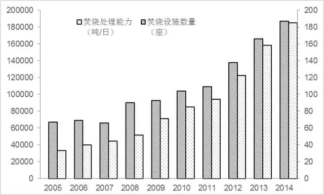 近年來我國城市生活垃圾焚燒處理設(shè)施投入運行數(shù)量逐年增加,焚燒處理能力也有非常大的提高。