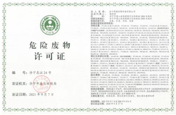 ▲ 濟寧明德項目成功申領(lǐng)5年期