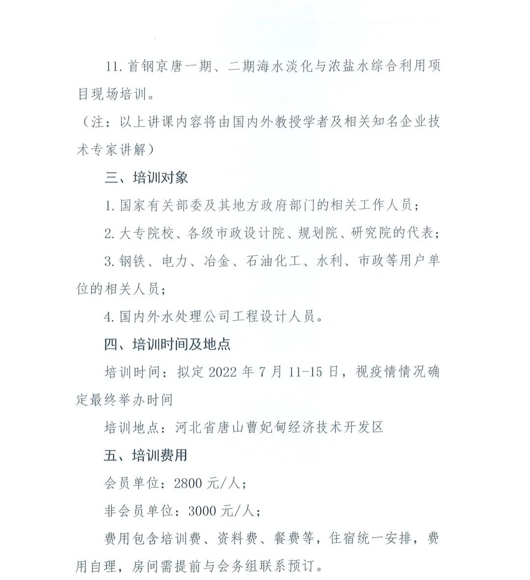 原標(biāo)題:【會(huì)議通知】第十一屆海水淡化工程與技術(shù)培訓(xùn)班