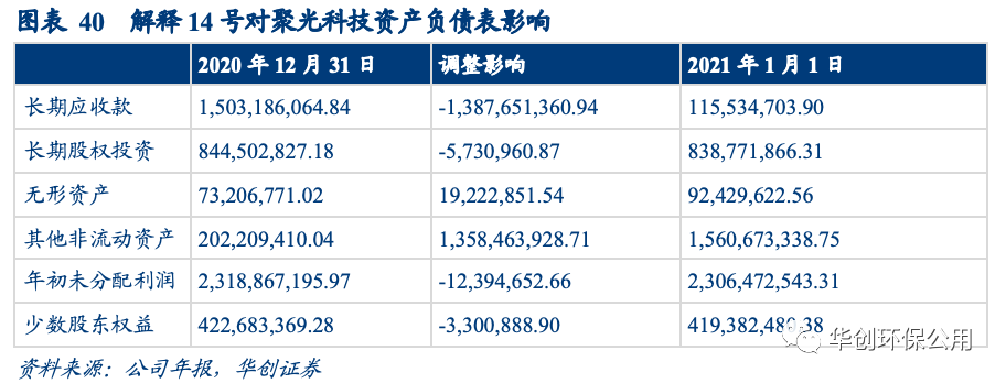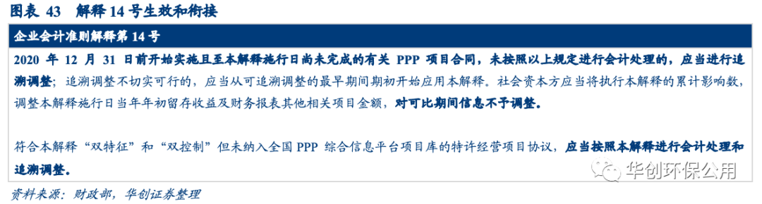 解釋14號(hào)要求對(duì)部分借款費(fèi)用予以費(fèi)用化處理。解釋2號(hào)中對(duì)價(jià)類型(無(wú)形資產(chǎn)模式、金融資產(chǎn)模式或混合模式)對(duì)借款費(fèi)用資本化沒(méi)有影響而解釋14號(hào)明確借款費(fèi)用的資本化對(duì)象是無(wú)形資產(chǎn),對(duì)價(jià)類型是金融資產(chǎn)或者是混合模式下的金融資產(chǎn)部分,相關(guān)的借款費(fèi)用均應(yīng)予以費(fèi)用化。我們認(rèn)為該會(huì)計(jì)準(zhǔn)則的變更是2021年部分環(huán)保上市公司財(cái)務(wù)費(fèi)用上漲的原因之一。