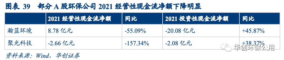 2021年8月,財(cái)政部發(fā)布了11個(gè)政府和社會(huì)資本合作(PPP) 會(huì)計(jì)處理實(shí)施問(wèn)答,對(duì)PPP項(xiàng)目建造期間發(fā)生的建造支出在現(xiàn)金流量表中應(yīng)如何列示做出進(jìn)一步說(shuō)明:PPP項(xiàng)目建造期間相關(guān)建造支出作為投資性現(xiàn)金流列示調(diào)整至經(jīng)營(yíng)性現(xiàn)金流列示。我們認(rèn)為該會(huì)計(jì)準(zhǔn)則的變更是2021年部分環(huán)保上市公司經(jīng)營(yíng)性現(xiàn)金流下滑的原因之一。