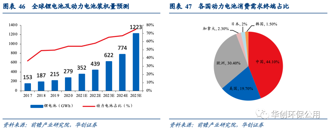 在電動(dòng)汽車市場(chǎng)快速增長(zhǎng)帶動(dòng)下,動(dòng)力型鋰離子電池繼續(xù)保持快速增長(zhǎng)勢(shì)頭。全球動(dòng)力電池年新增裝機(jī)量保持快速增長(zhǎng),根據(jù)前瞻產(chǎn)業(yè)研究院的預(yù)測(cè),2025年全球鋰電池裝機(jī)量將會(huì)達(dá)到1223GWh,動(dòng)力電池占比高達(dá)75.2%。2020年中國(guó)動(dòng)力電池終端消費(fèi)需求高達(dá)44.1%,居世界第一位。硫酸鈷和硫酸鎳是生產(chǎn)三元?jiǎng)恿﹄姵氐闹匾牧希磥?lái)有望量?jī)r(jià)齊升。