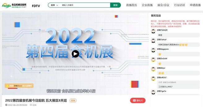 誠然,隨著近年來互聯(lián)網(wǎng)迅猛發(fā)展,新一代信息技術(shù)、新的信息交流方式等正從方方面面影響和改變著人們的生活,線上展會(huì)的出現(xiàn)已然成為企業(yè)打通線上線下、拓展商機(jī)的重要渠道之一。食品機(jī)械設(shè)備網(wǎng)作為國內(nèi)早期進(jìn)入食品機(jī)械行業(yè)門戶網(wǎng)站,立足于社會(huì)發(fā)展,立足于食品機(jī)械行業(yè)發(fā)展,立足于行業(yè)平臺(tái)與視頻直播技術(shù)等優(yōu)勢(shì),匠心打造食品機(jī)械設(shè)備行業(yè)盛會(huì)——食機(jī)展,以直播內(nèi)容、云訪談等全天候切換輪播的形式,以一對(duì)一交流、遞名片、在線留言、觀看企業(yè)商鋪等貼心功能,促進(jìn)采供雙方洽談溝通,是我們與時(shí)代同進(jìn)步、與行業(yè)共成長的重要舉措。