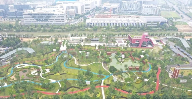 成都市雙流公興(中電子)再生水廠項(xiàng)目設(shè)計(jì)規(guī)模10萬(wàn)噸/日,采用地下式設(shè)計(jì),大大節(jié)約占地面積,地上是開(kāi)放式生態(tài)綠地公園及科普教育中心,有效滿(mǎn)足城市界面與基礎(chǔ)設(shè)施環(huán)境高度融合,還社會(huì)以廣闊的自然空間。同時(shí),項(xiàng)目以新理念、高標(biāo)準(zhǔn)打造,在環(huán)境融合度、建設(shè)標(biāo)準(zhǔn)和功能延伸方面突破傳統(tǒng),賦予了城市基礎(chǔ)設(shè)施更大價(jià)值。
