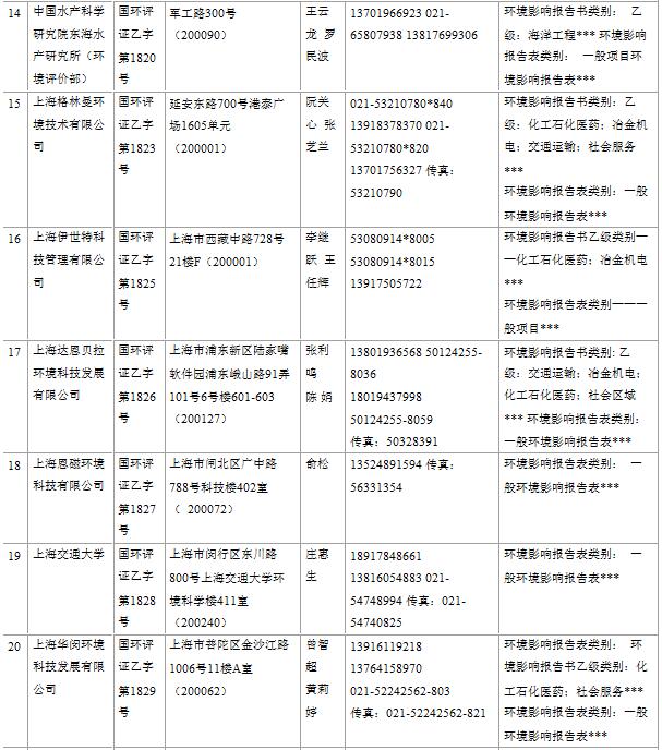 上海市建設(shè)項(xiàng)目環(huán)境影響評(píng)價(jià)單位一覽表(甲級(jí))(2017年2月更新)