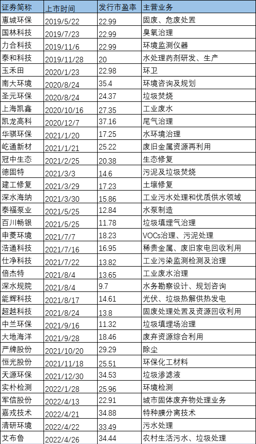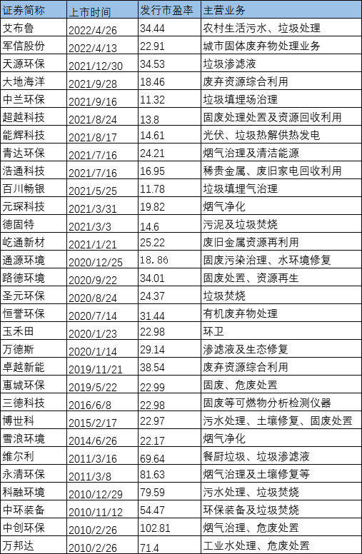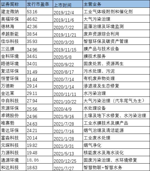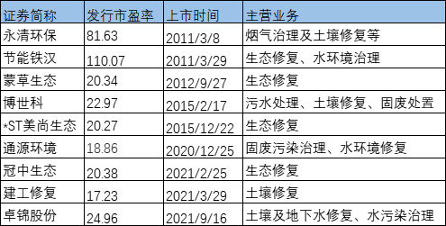 四領域發(fā)行市盈率比較 固廢企業(yè)被資本持續(xù)看好