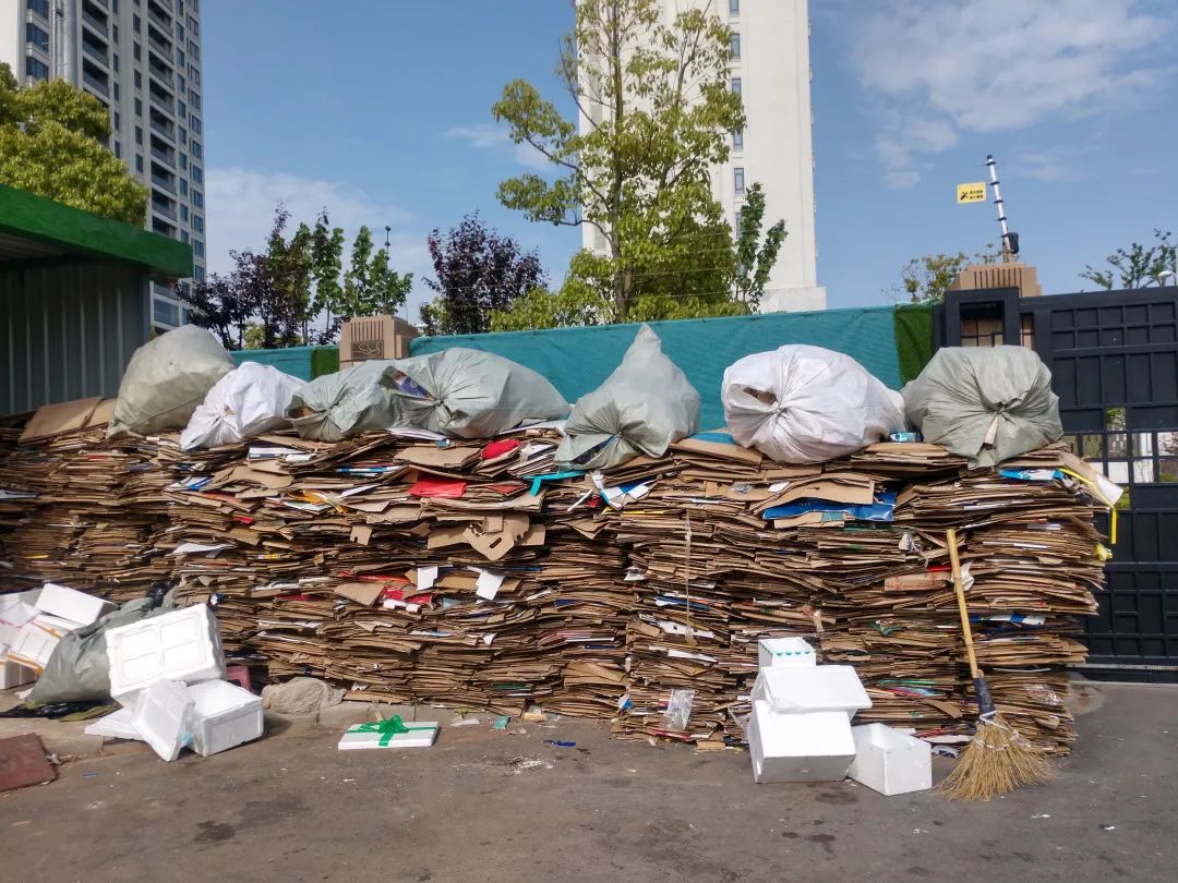 疫情期間小區(qū)可回收物照舊回收,先存放在小區(qū)內(nèi)