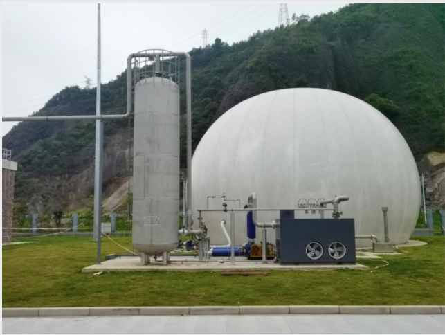 濕式中溫厭氧產(chǎn)沼技術(shù)采用2座2300m³厭氧消化罐24小時(shí)連續(xù)運(yùn)行,溫度控制在38±2℃,厭氧消化產(chǎn)生的沼氣收集輸送至沼氣儲(chǔ)柜,在經(jīng)過(guò)一系列凈化處理之后進(jìn)入燃?xì)獍l(fā)電機(jī)發(fā)電或用于冬季建筑取暖用熱系統(tǒng)。