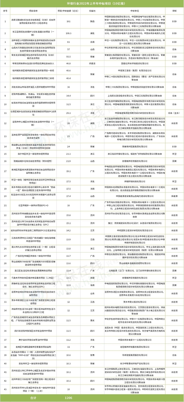 2022年行程過(guò)半,上半年的龍爭(zhēng)虎斗也有了半程賽結(jié)果。環(huán)保在線特盤(pán)點(diǎn)了上半年10億級(jí)環(huán)保項(xiàng)目,粗略統(tǒng)計(jì)約有43個(gè),總投資超過(guò)1200億。