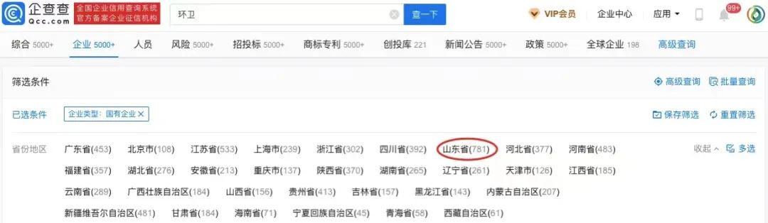 仍然通過企查查查詢“環(huán)衛(wèi)”,可以得到字號或經(jīng)營范圍內包含“環(huán)衛(wèi)”或“環(huán)境衛(wèi)生”的企業(yè)總量,全國共計761712家,其中性質為“國有企業(yè)”的僅8307家,占企業(yè)總量的1.09%。