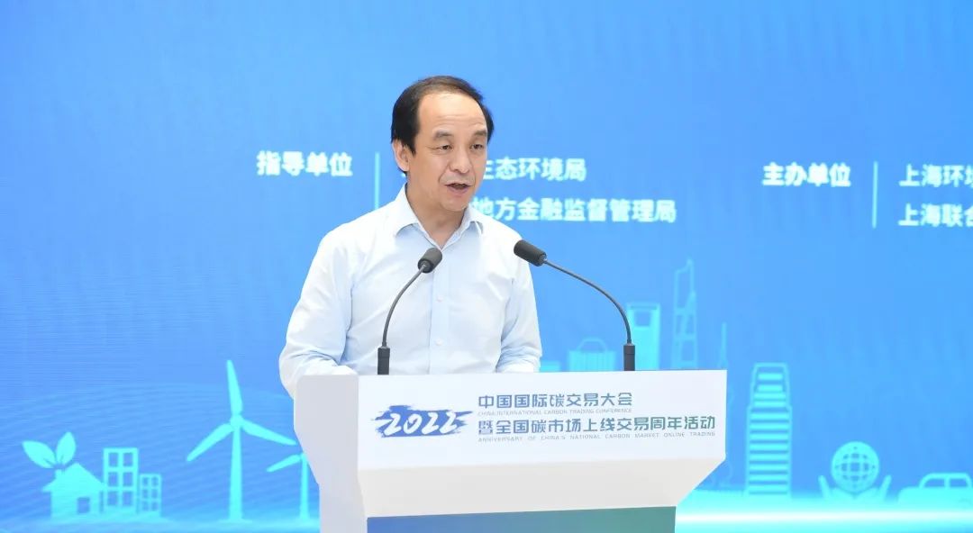 7月16日,全國碳排放權交易市場啟動上線交易一周年之際,在上海市生態(tài)環(huán)境局和上海市地方金融監(jiān)督管理局的指導下,由上海環(huán)境能源交易所(簡稱“上海環(huán)交所”)和上海聯(lián)合產(chǎn)權交易所(簡稱“上海聯(lián)交所”)通過線上線下相結合的形式,在上海環(huán)交所交易大廳成功舉辦首屆“2022中國國際碳交易大會”。中國氣候變化事務特使解振華通過視頻連線發(fā)表主旨演講,“GF60論壇”學術委員會委員、原中國銀行業(yè)監(jiān)督管理委員會主席劉明康,生態(tài)環(huán)境部應對氣候變化司司長李高、上海市生態(tài)環(huán)境局局長程鵬以及多名專家學者在大會上演講和交流。