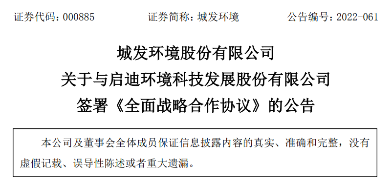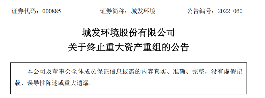 據(jù)公告顯示,終止本次重大資產(chǎn)重組的原因是城發(fā)環(huán)境自籌劃本次重大資產(chǎn)重組事項(xiàng)以來,嚴(yán)格按照相關(guān)法律法規(guī)的要求,與交易對方及其他相關(guān)雙方持續(xù)進(jìn)行磋商與研討,并根據(jù)磋商結(jié)果積極推進(jìn)相關(guān)盡職調(diào)查、審計(jì)、信息披露、內(nèi)部決策等工作。鑒于本次重大重組方案論證歷時(shí)較長,相關(guān)市場環(huán)境較本次交易籌劃之初發(fā)生較大變化。經(jīng)審慎研究分析,為切實(shí)維護(hù)城發(fā)環(huán)境及全體股東利益,經(jīng)與啟迪環(huán)境協(xié)商,雙方?jīng)Q定終止本次重大資產(chǎn)重組事項(xiàng)。根據(jù)法律法規(guī)及公司章程規(guī)定,經(jīng)雙方充分溝通及友好協(xié)商,城發(fā)環(huán)境董事會經(jīng)審慎研究后,依法履行了相關(guān)審議程序,終止本次重大資產(chǎn)重組。同時(shí),另一則公告顯示,城發(fā)環(huán)境與啟迪環(huán)境簽署的戰(zhàn)略框架性協(xié)議。合作內(nèi)容、合作機(jī)制與合作期限等事項(xiàng)的具體實(shí)施尚存在不確定性,具體的項(xiàng)目合作協(xié)議或項(xiàng)目開展方案尚需雙方進(jìn)一步協(xié)商確定。公告顯示,基于城發(fā)環(huán)境在環(huán)保項(xiàng)目建設(shè)、區(qū)域市場拓展、環(huán)保技術(shù)研發(fā)及人員交流等方面與啟迪環(huán)境已經(jīng)開展了深入、全面的合作,具備良好的合作基礎(chǔ),為延續(xù)雙方友好合作關(guān)系、充分發(fā)揮雙方在環(huán)保、能源領(lǐng)域的發(fā)展優(yōu)勢,公司與啟迪環(huán)境共同簽署了《全面戰(zhàn)略合作協(xié)議》,以進(jìn)一步推動(dòng)雙方交流合作。