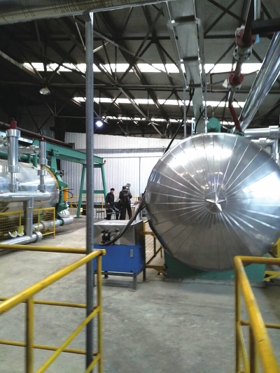 進入廠區(qū),現代化的廠房、辦公樓和景觀綠化,似乎和餐廚垃圾處理工廠不相符。更讓人意外的是,從設有辦公、實驗、生產控制中心、會議室、生產流程演示、產品成列等功能的現代化辦公樓出來后,走進生產車間,除了可見4個大型餐廚垃圾喂料口外(即餐廚垃圾運輸車傾倒口),全是大型箱體、罐體,以及各種粗細的管子相連,一道道工序實現了自動化,看不見一點餐廚垃圾,這里像一座現代化的啤酒車間?!巴耆珜崿F了自動化。”