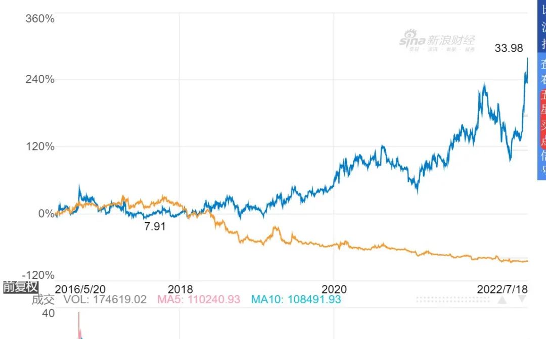 我們對比下與另一個環(huán)保龍頭啟迪環(huán)境的走勢可以看出,2018年前兩者走勢差不多,2018年后,啟迪環(huán)境一路下跌,而偉明環(huán)保則一路上漲,形成巨大的喇叭口。啟迪環(huán)境4年多估值大約下降了80%,偉明上漲了250%。啟迪環(huán)境代表著很多環(huán)保企業(yè),而跟偉明環(huán)保走勢相仿的則寥寥無幾。