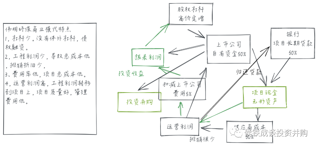 偉明一方面拓展新的業(yè)務(wù),另一方面也在走其他企業(yè)走過的路。自己賣設(shè)備給自己的投資項目,賺取工程毛利,這塊報表上有所體現(xiàn),并且比例不小,還有增長。也在走其他環(huán)保企業(yè)走過的老路。但由于前面反著走,給人們留下了穩(wěn)健的印象,現(xiàn)在走老路,反而不容易被發(fā)現(xiàn)。前面以誠懇示人,后面再回歸套路,是個很好的小閉環(huán)。企業(yè)成長的周期中,這個套路非常有效,也具有很強(qiáng)的持續(xù)性。偉明屬于環(huán)保行業(yè)的后來創(chuàng)新者,進(jìn)入行業(yè)較晚,但取得成績不小。